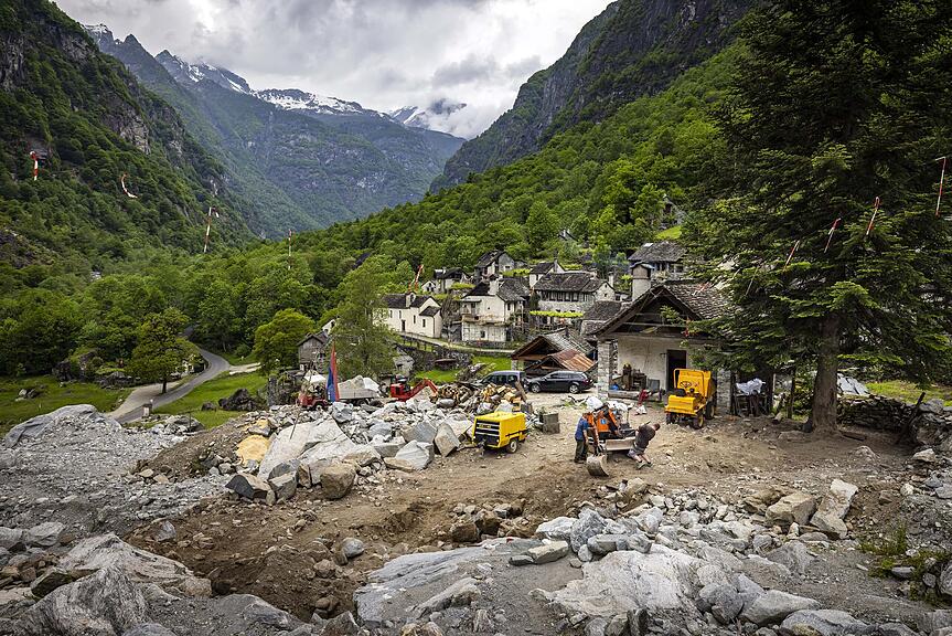 Auf halber Höhe im Weiler Fontana ist derweil Fabiano Balli damit beschäftigt, vor seinem Rustico aufzuräumen. In der Unwetternacht war er dort mit seinem Vater; das Häuschen wurde knapp verschont, das Geröll und anderes Material aber türmte sich bis vor dem Eingang. Balli ist ein Mann des Tales, das in Jahrhunderten immer wieder von Naturereignissen heimgesucht wurde, und das spiegelt sich in seiner Einstellung: «Wir müssen nach vorne schauen, das Schicksal hängt nicht an uns.»