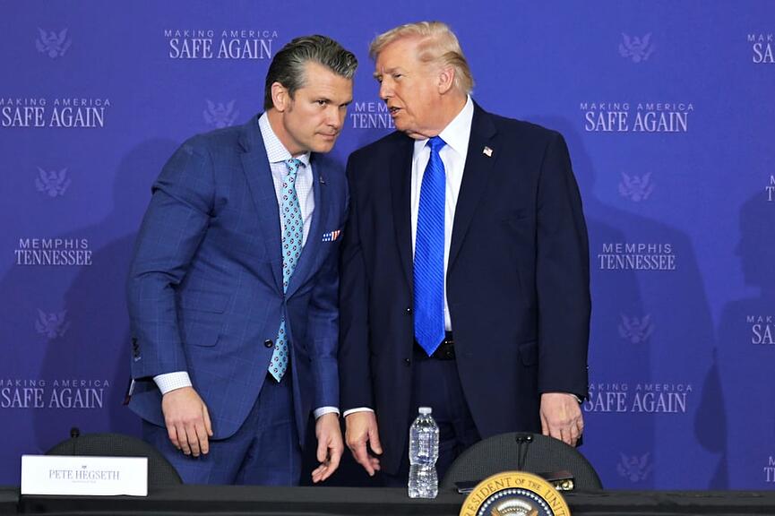 Deshalb habe er mit Verteidigungsminister und dem höchsten General Dan Caine über die Möglichkeit einer «kleinen Reise» in den Iran gesprochen, also einer militärischen Intervention. Und dann, so Trump während er sich auf dem Podium in Richtung seines Ministers Hegseth wandte, «warst du es Pete, glaube ich, der sich als Erster dafür ausgesprochen hat». Hegseth hat laut Trump gesagt: