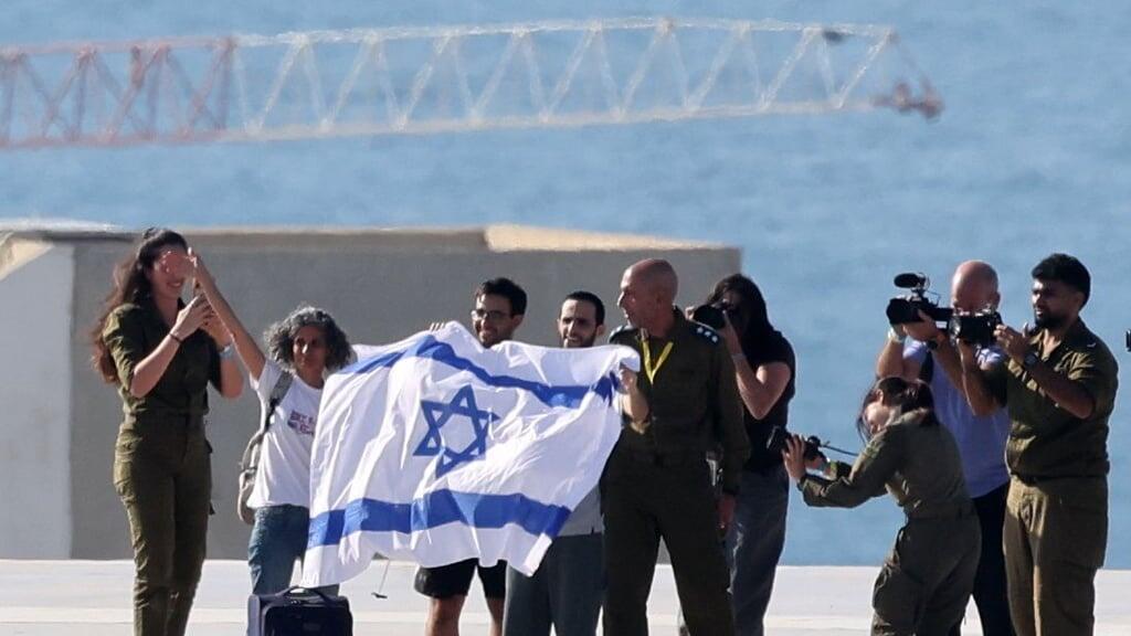 Erleichhertung bei der Ankunft in Tel Aviv: Die freigelassene Geisel Nimrod Cohen mit einer israelischen Flagge.