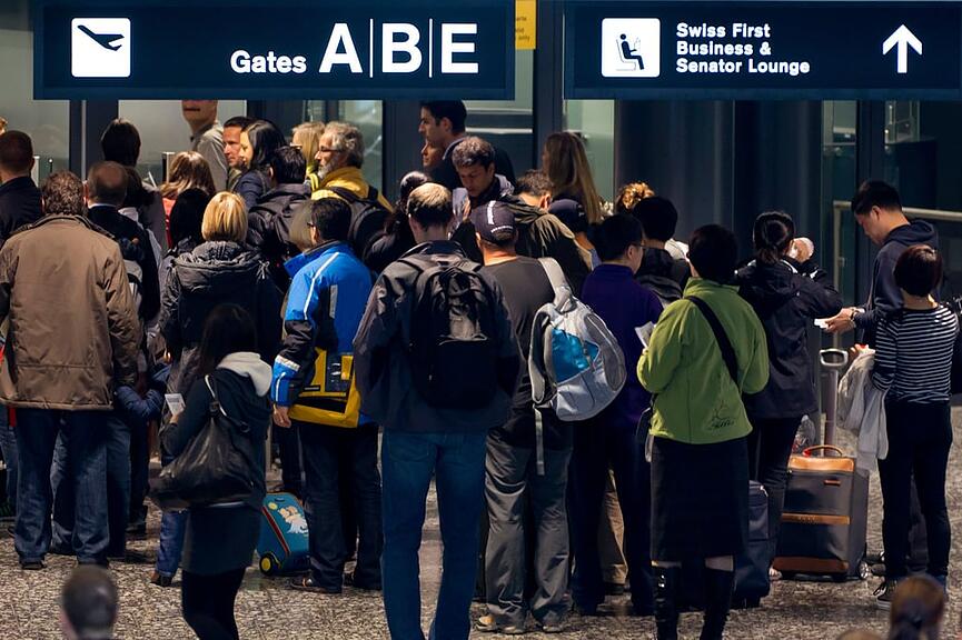 Doch während diese Zahlen - von der Corona-Zeit abgesehen - stetig steigen, sind die Platzverhältnisse bei der Passkontrolle gleich geblieben. Dies führt in Spitzenzeiten, etwa in den Ferienmonaten, zu langen Schlangenbildungen und entsprechend zu unzufriedenen Passagieren. Zuweilen reicht die Fluggastschlange sogar die Rolltreppe hinauf ins so genannte Airside-Center, wo sich Cafés und Shops befinden.