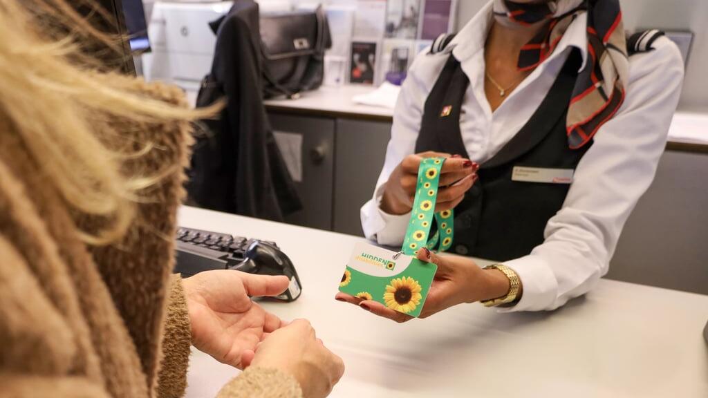 Es ist ein kleines Utensil mit einer grossen Wirkung für Betroffene: Ein günes Umhängeband mit Sonnenblumen-Symbol. Diese so genannten Sunflower Lanyards, die 2015 erstmals am Flughafen London-Gatwick eingesetzt wurden, setzen sich international zunehmend als Hilfsmittel für Menschen mit Beeinträchtigungen durch.