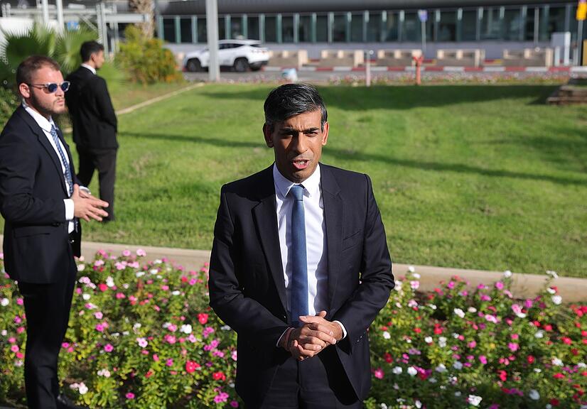 Auch der britische Premier Rishi Sunak ist in der Region unterwegs, er traf sich am Donnerstag in Israel mit Präsident Izchak Herzog. (dpa)