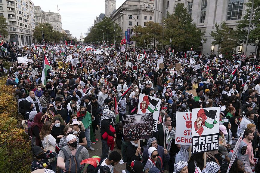 Hunderte von Demonstranten haben am Mittwoch auf dem Areal des amerikanischen Parlamentsgebäudes in Washington gegen den Krieg im Nahen Osten demonstriert. Die Menschen trugen Transparente auf sich, auf denen Botschaften wie «Waffenstillstand» zu lesen waren. Die Kundgebung war durch die linke Gruppierung «Jewish Voice for Peace» organisiert worden, die anti-zionistische Parolen verbreitet.