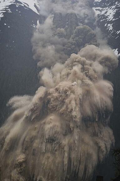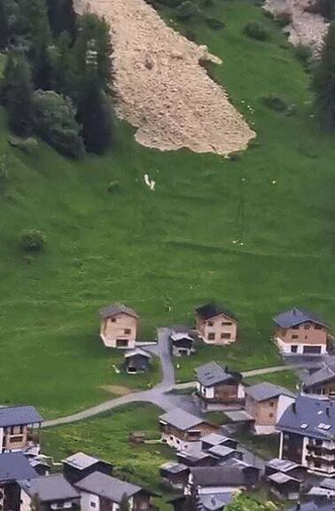 Eine grosse Lawine aus Eis, Fels und Schnee erreicht am Mittwoch die Talsohle bei Blatten und verschüttet das Dorf. Die Bilder.
