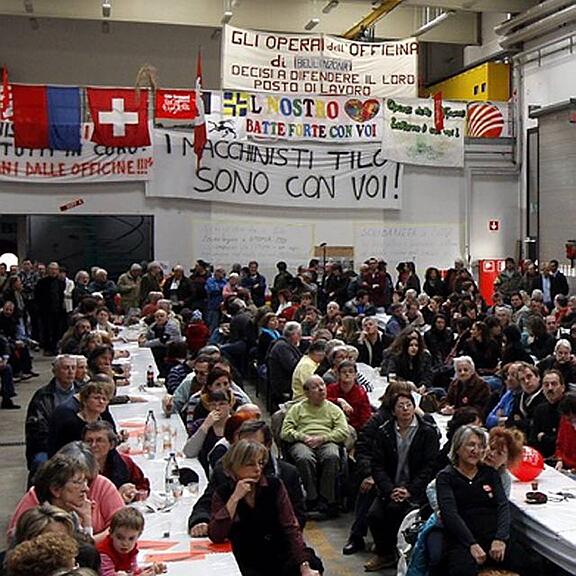 Nationalratspräsidentin Chiara Simoneschi-Cortesi (CVP) und der Tessiner Regierungspräsident Marco Borradori (Lega) würdigten in ihren Reden den Kampf der SBB-Angestellten um den Erhalt der Arbeitsplätze im Industriewerk Bellinzona (IWB).