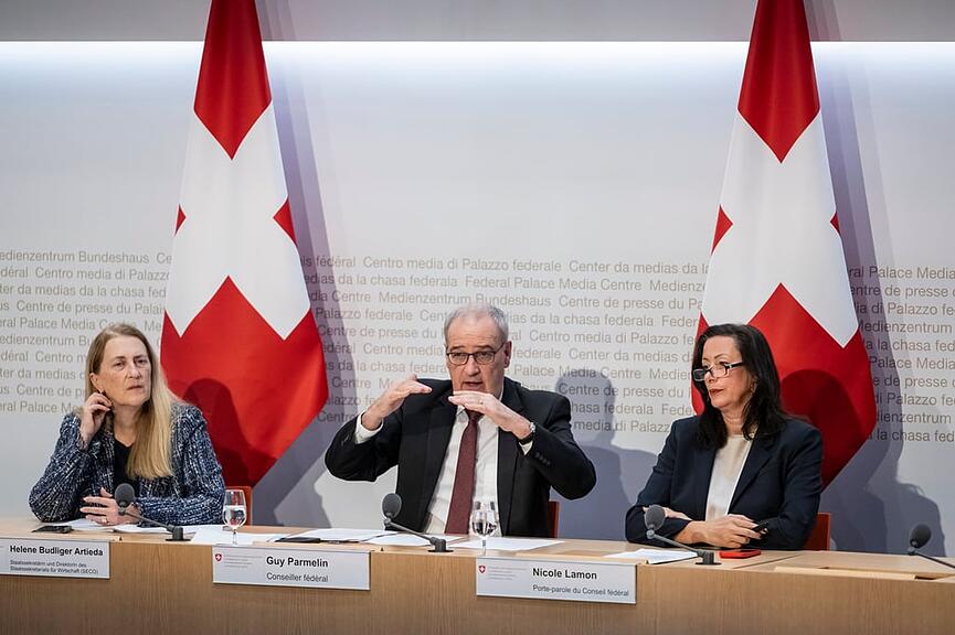 «Das glaube er nicht», antwortet Guy Parmelin auf die entsprechende Frage eines Journalisten. Weiter ging er nicht darauf ein.