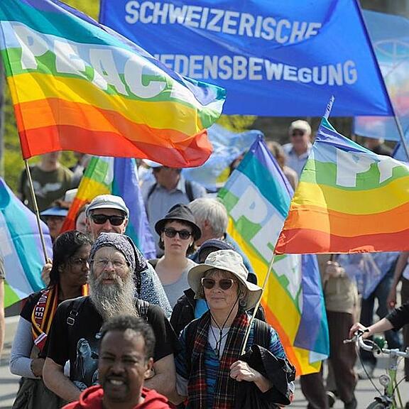 Um die 600 Menschen beteiligten sich am Friedensmarsch vom Eichholz in Wabern der Aare entlang zum Münsterplatz, wo die Schlusskundgebung stattfand. Das seien etwa doppelt so viele wie letztes Jahr, was man allerdings zu einem guten Teil dem Wetter verdanke, räumten die Organisatoren ein.