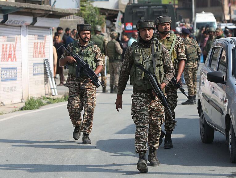 Das indische Militär erklärte, pakistanische Truppen hätten willkürlich gefeuert, neben Artillerie auch mit Gewehren - sowohl entlang der Kontrolllinie als auch der internationalen Grenze. Man reagiere angemessen, hiess es. (dpa)