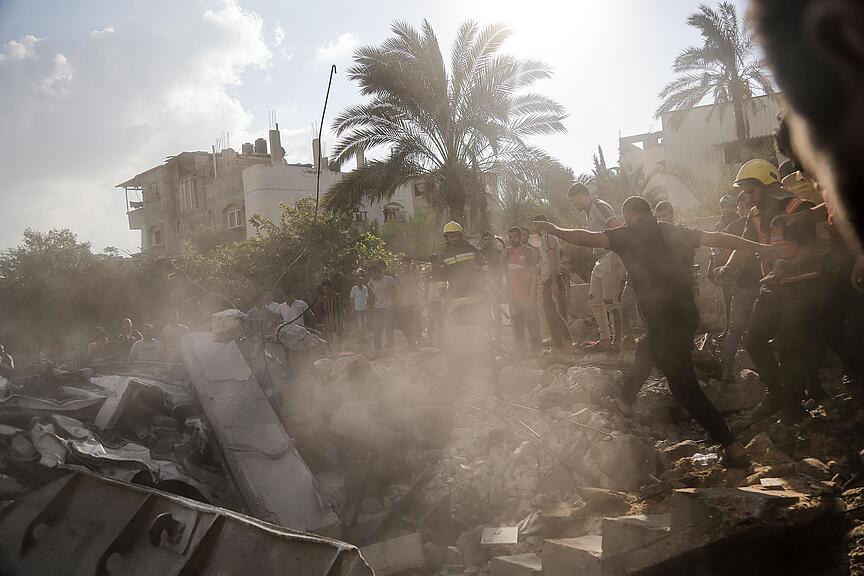 Die israelische Armee griff daraufhin nach eigenen Angaben Hunderte Terrorziele im Gazastreifen an. Die Zahl der dabei getöteten Palästinenser ist am Mittwoch auf mindestens 1055 gestiegen. Rund 5000 weitere Menschen seien verletzt worden, teilte das Gesundheitsministerium in Gaza mit. (dpa)