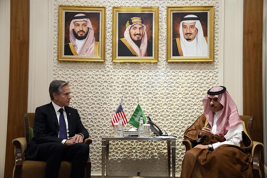 Bei dem Treffen in der saudischen Küstenstadt Dschidda sagte Saudi-Arabiens Aussenminister Bin Farhan, dass sich das Königreich weiterhin um eine Deeskalation des Konfliktes bemühe, wie das saudische Aussenministerium am Mittwoch mitteilte. Aus Diplomatenkreisen hiess es zuvor, dass Saudi-Arabien Gespräche über eine mögliche Normalisierung der Beziehungen mit Israel gestoppt hat.