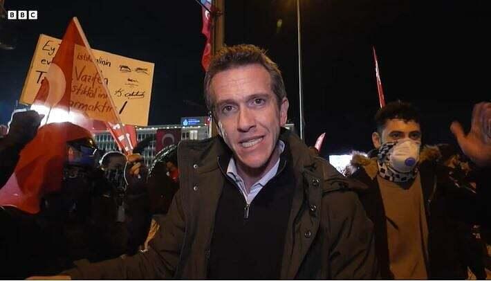 Ein Journalist des britischen Senders BBC ist festgenommen und aus der Türkei abgeschoben worden. Er hatte sich nach Angaben des Senders mehrere Tage in der Türkei aufgehalten , um über die anhaltenden Proteste zu berichten, die durch die Verhaftung und Absetzung des Istanbuler Bürgermeisters Ekrem Imamoglu in der vergangenen Woche ausgelöst worden waren.