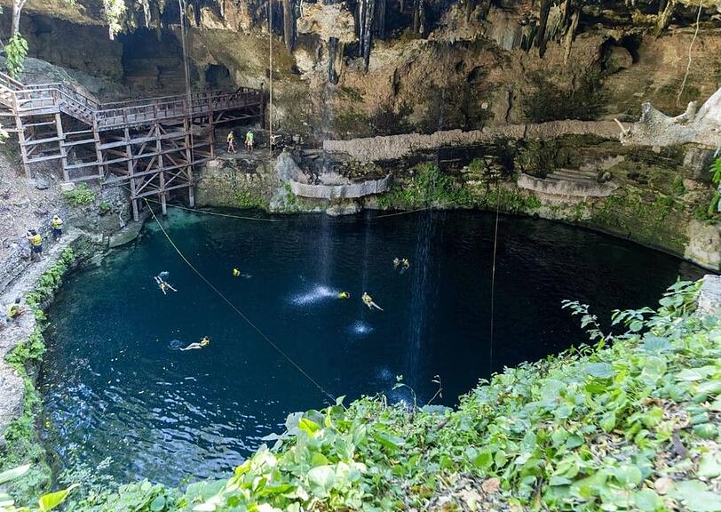 Früher war die Cenote Zací in Valladolid eine wichtige Wasserquelle der Mayas, heute zieht sie Touristen zum Schwimmen an. Oder auch für andere Aktivitäten: In der Karsthöhle im Stadtzentrum Valladolids wurde am Samstag ein Schweizer festgenommen, den offenbar seine Lustgefühle übermannt hatten. Gemäss lokalen Medien wurde er im Wasser beim Sex mit einer Mexikanerin erwischt.