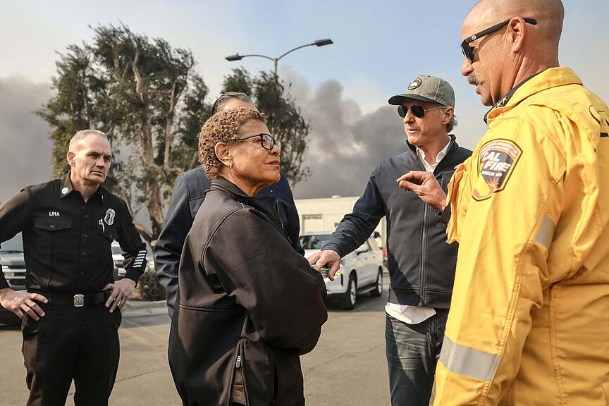 Anwohner berichteten laut den Reportern von nicht funktionierenden Hydranten, zu wenig Löschwasser und einer spärlichen Präsenz von Rettungskräften in manchen Gegenden. Bass betonte, dass extreme Wetterbedingungen – insbesondere die starken Winde – die Situation verschärft und den Einsatz von Löschflugzeugen behindert hätten. «Wir wissen auch, dass Feuerhydranten nicht für derartige massive Zerstörungen ausgelegt sind», sagte sie.