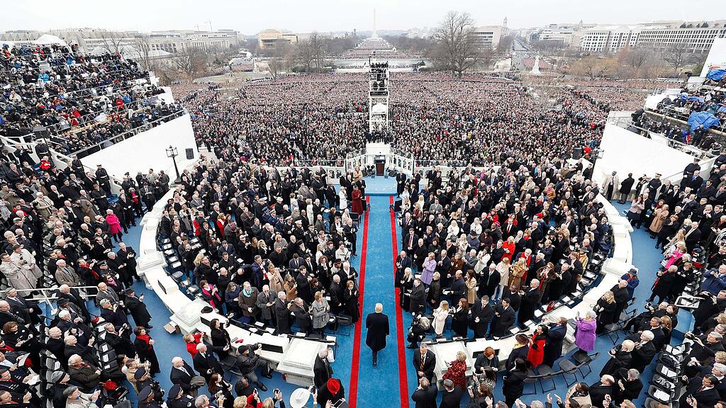 So wurde Donald Trump (Bildmitte) vor acht Jahren bei seiner ersten Amtseinführung gefeiert. Die Zeremonie am kommenden Montag, zu Beginn der zweiten Amtszeit, soll nun im Kapitol stattfinden.