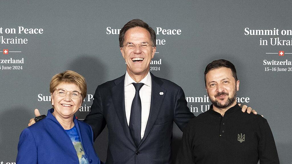 Mögliche Neuauflage in Davos: Bundespräsidentin Viola Amherd, Nato-Generalsekretär Mark Rutte und der ukrainische Präsident Wolodimir Selenski, hier bei der Bürgenstock-Konferenz im Juni 2024.
