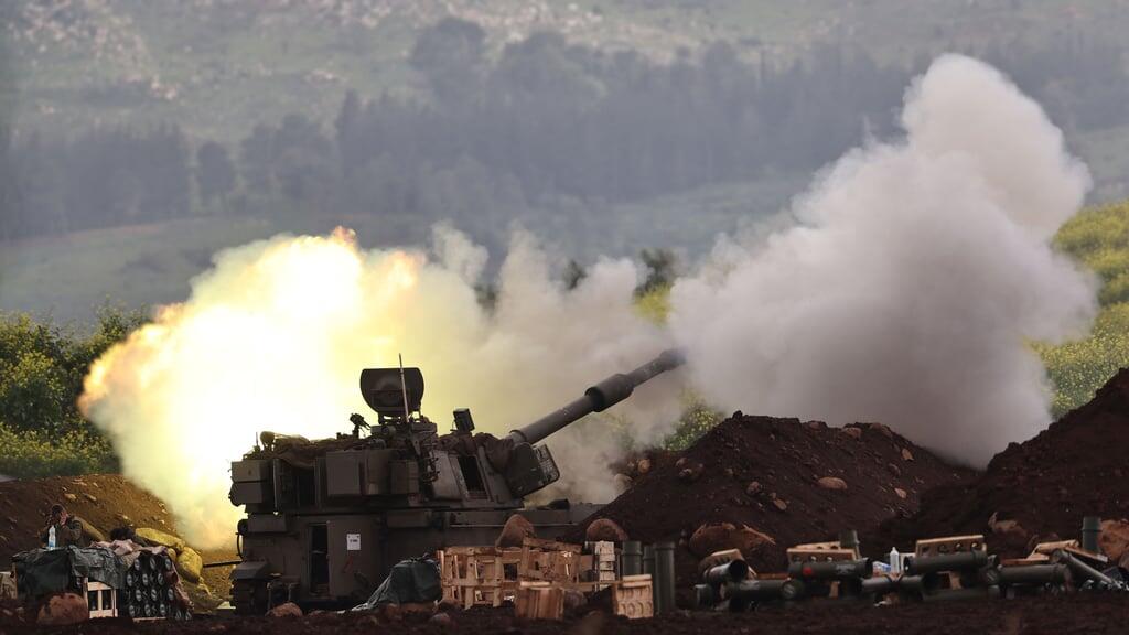 Eine israelische Panzerhaubitze beschiesst am Sonntag Ziele entlang der israelisch-libanesischen Grenze.