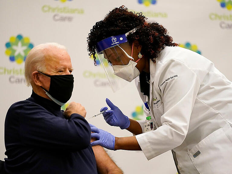 Es werde noch einige Zeit dauern, bis die Pandemie eingedämmt werden könne, sagte Biden. Bis dahin sollten die Menschen weiter auf den Rat der Experten hören und Masken tragen, den nötigen Sicherheitsabstand einhalten und auch trotz der Feiertage keine unnötigen Reisen unternehmen, mahnte der 78-Jährige. "Wenn Sie nicht reisen müssen, reisen Sie nicht", forderte er. Die Bidens bekamen die erste von zwei Spritzen mit dem Impfstoff der Unternehmen Pfizer und Biontech.