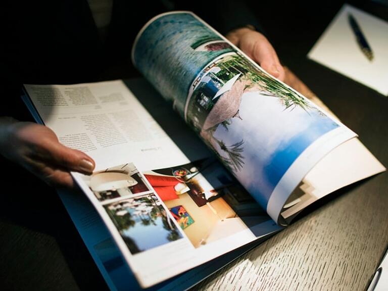 Eine Kundin studiert einen Katalog des Reisekonzerns Kuoni (Archiv)