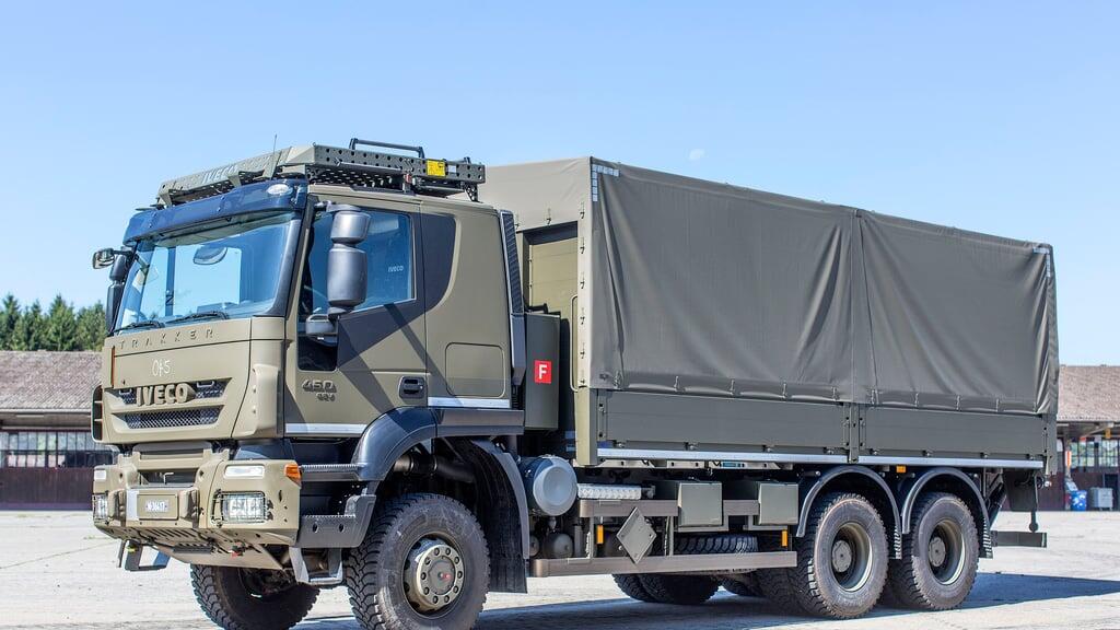 Motorfahrer der Armee dürfen nicht nur Militärlastwagen fahren. Sie dürfen sich auch im zivilen Berufsleben hinters Lastwagenfahrrad setzen (im Bild: Ein Iveco-Fahrzeug der Armee, aufgenommen in Hinwil am 17. Juli 2014).