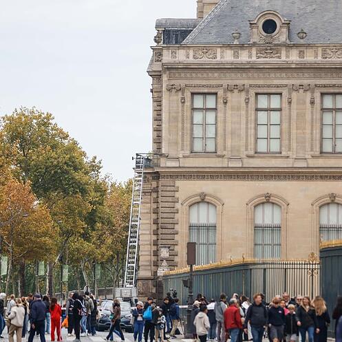 Für ihren dreisten Raubzug bei helllichtem Tage hatten die Täter am Sonntagmorgen einen mit einer Hebebühne ausgestatteten Lkw an der zur Seine gelegenen Seite des Museums auf dem Bürgersteig geparkt und Warnkegel auf der Strasse aufgestellt. Während zwei der Täter auf Motorrollern an der Strasse warteten, gelangten die anderen beiden mit der Hebebühne auf einen Balkon im ersten Stock des Museums. Dort zerstörten sie mit einem Trennschleifer eine Scheibe, um direkt in den Ausstellungsraum in der Galerie d'Apollon zu gelangen und dort auf Beutezug zu gehen.