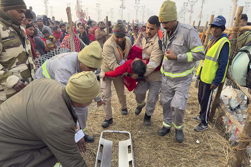 Auf dem Gelände für das Hindu-Fest Maha Kumbh Mela an den Ufern des Ganges in Prayagraj im nordindischen Bundesstaat Uttar Pradesh befinden sich Millionen von Menschen. Der Zwischenfall ereignete sich den Berichten zufolge am frühen Mittwochmorgen (Ortszeit) unweit des Zusammenflusses des Ganges mit dem ebenfalls als heilig verehrten Fluss Yamuna. Bei einem Gedränge seien zur Sicherheit aufgestellte Barrikaden eingestürzt, berichtete der Sender NDTV. Einige Besucher seien auf den Boden gefallen und es sei Panik ausgebrochen. Etwa dreissig Frauen seien verletzt worden.