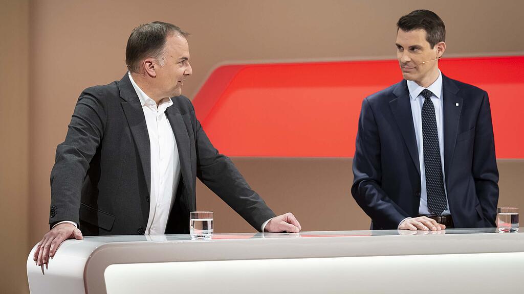 Sowohl SVP-Präsident Marcel Dettling (links) wie FDP-Präsident Thierry Burkart wollen mehr Geld für die Armee. Dettling allerdings langfristig.