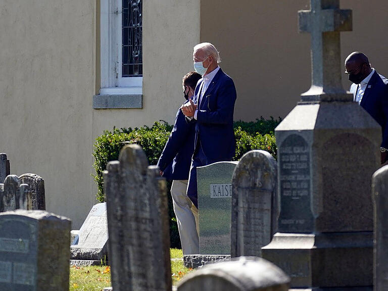 Joe Biden, "Gewählter Präsident" ("President Elect") verlässt nach einer Messe das Gelände der St. Joseph on the Brandywine Church. Foto: Carolyn Kaster/AP/dpa