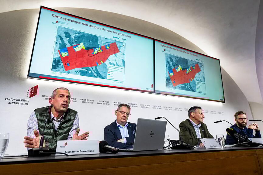 Auch im Rest des Gemeindebanns droht Gefahr. Ein See, wie er sich nach dem Bergsturz plötzlich gebildet hatte, sei auch in Zukunft wieder möglich, sagte Guillaume Favre Bull. Der Geologe leitet seit wenigen Wochen den Dienst für Naturgefahren im Kanton Wallis.