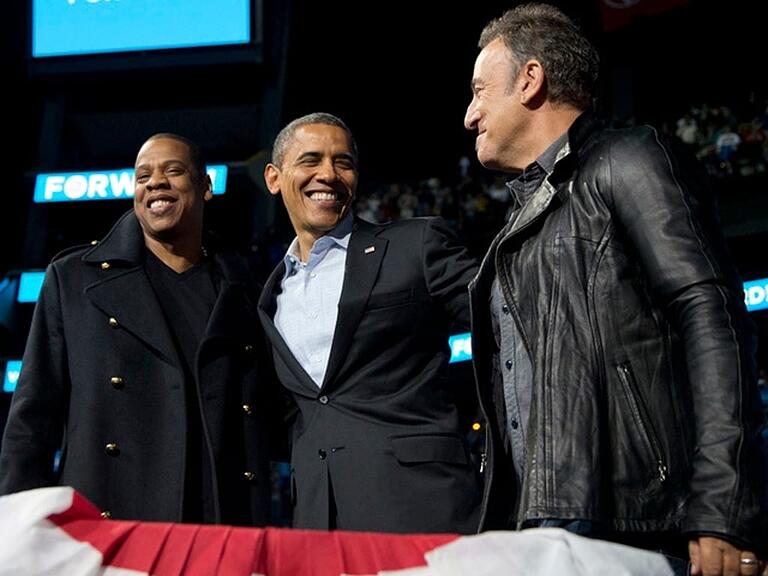 Er spielte aber auch Hits wie "Land of Hope and Dreams". Auf der Bühne fielen Springsteen und der Präsident sich in Wisconsin in die Arme. Auch der Rapper Jay-Z trat am letzten Tag der Kampagne für Obama auf.
