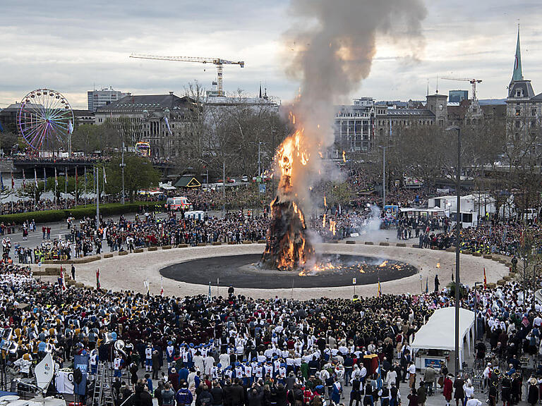 Das Sechseläuten geht zurück auf einen jahrhundertealten Brauch: Wenn im alten Zürich die Abende wieder heller wurden und die Kirchenglocken erstmals wieder um 18 Uhr statt schon um 17 Uhr zum Feierabend läuteten, trafen sich die Jungen auf den Plätzen und zündeten Scheiterhaufen mit Strohmännern an. (sda)
