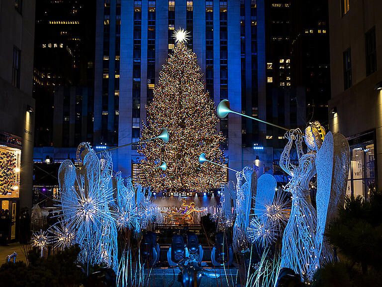 Das seit Anfang der 1930er Jahre jährlich zelebrierte Anzünden der Lichter am Baum vor dem Rockefeller Center gilt als eine der beliebtesten New Yorker Weihnachtstraditionen. Der diesjährige Baum ist eine rund 23 Meter hohe Fichte aus der Kleinstadt Oneonta rund 270 Kilometer nördlich von New York. Nach der Anlieferung war zwischen den Ästen des Baumes überraschend eine kleine Eule gefunden worden, die inzwischen wieder in die Freiheit entlassen worden ist. Dann wurden die Zweige unter anderem mit Zehntausenden Lichtern geschmückt. Auf der Spitze des Baumes sitzt ein rund 400 Kilogramm schwerer Stern von Star-Designer Daniel Libeskind. Zuvor war viele Jahre lang der deutsche Künstler Michael Hammers für den Stern verantwortlich gewesen.