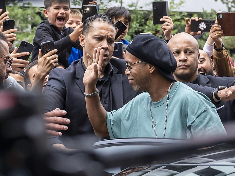 Bei seinem Eintreffen war Ronaldinho von Fans umlagert, wie auf den Bildern der Nachrichtenagentur Keystone-SDA zu sehen ist. Der zweimalige Weltfussballer und Weltmeister von 2002 spielte in seiner Karriere unter anderem für den FC Barcelona und den AC Mailand.
