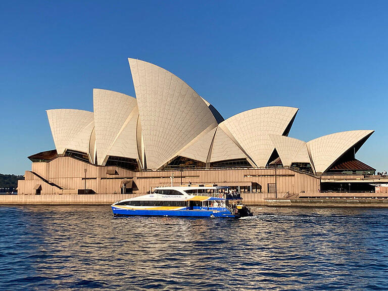 Das Opernhaus gilt neben der nahe gelegenen Harbour Bridge als eines der Wahrzeichen der australischen Metropole. Der Entwurf stammt vom dänischen Architekten und Pritzker-Preisträger Jørn Utzon (1918–2008). Nach 14-jähriger Bauzeit wurde die Oper am 20. Oktober 1973 feierlich von Queen Elizabeth II. eingeweiht.