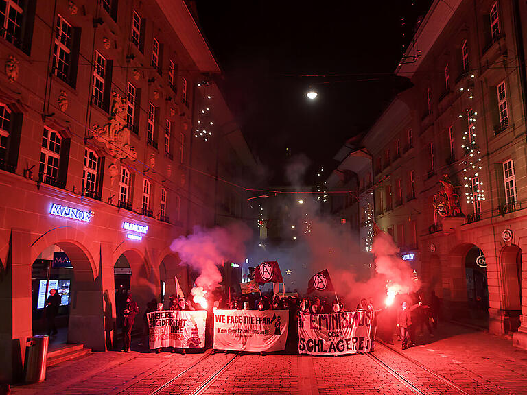 Die Linksextremen zündeten auf ihrem Marsch vom Bahnhofplatz durch die Innenstadt am späten Dienstagabend teils Pyrofakeln und Feuerwerk, wie ein Fotograf der Nachrichtenagentur Keystone-SDA berichtete. Nach Mitternacht löste sich der Demozug bei der Schützenmatte auf, wie die Berner Kantonspolizei auf Twitter mitteilte.