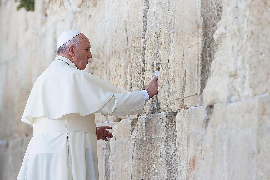 Der Papst warb stets für Frieden. So setzte er sich bei seiner Reise nach Israel 2014 für Versöhnung im Nahen Osten ein./>