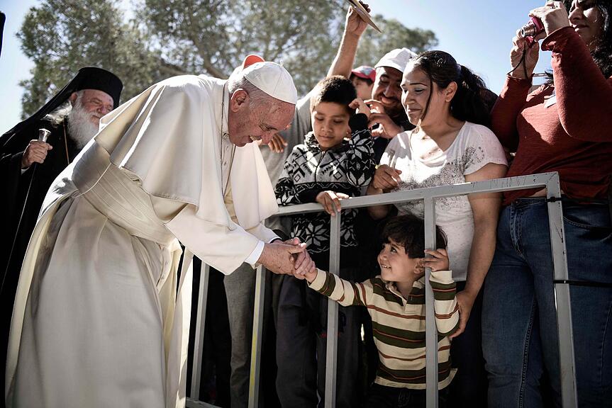 Der Papst setzte sich in seiner Amtszeit für Flüchtlinge auf der ganzen Welt ein und besuchte immer wieder Flüchtlingscamps, wie unter anderem 2016 auf der griechischen Insel Lesbos./>