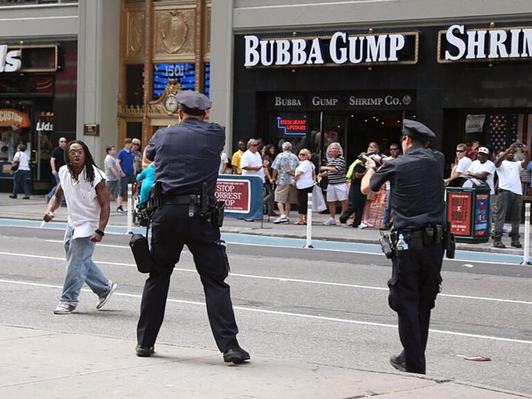 Die Polizisten hatten den Mann am Wochenende zunächst auf dem Times Square kontrollieren wollen, weil er augenscheinlich Haschisch rauchte. Als sie ihn ansprachen, zückte er ein Messer.