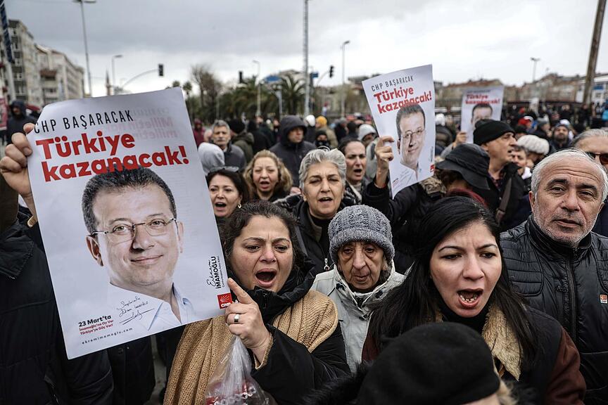 In der Türkei haben auch am Abend zahlreiche Menschen gegen die Festnahme von Istanbuls Bürgermeister Ekrem Imamoglu demonstriert. Trotz eines Verbotes kamen allein in Istanbul Tausende Menschen unter hohem Polizeiaufgebot vor der Stadtverwaltung zusammen, wie eine dpa-Reporterin vor Ort berichtete.