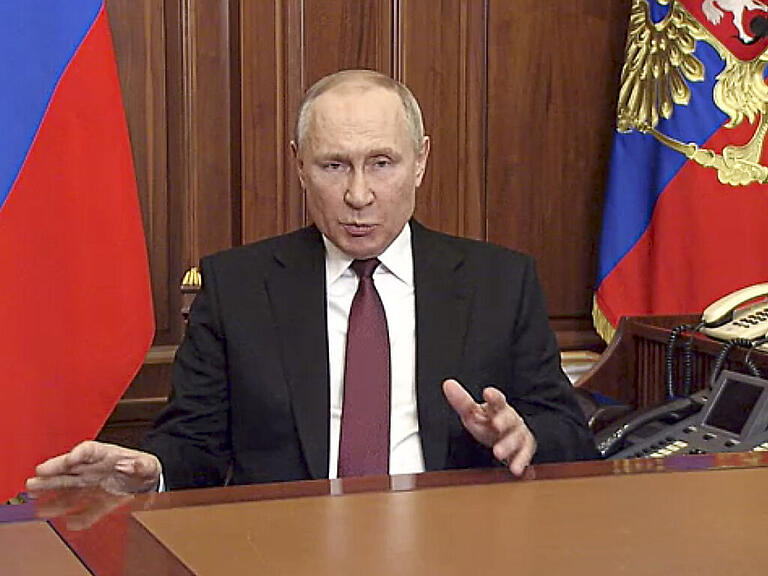 In der Ostukraine kämpfen seit 2014 prorussische Separatisten gegen ukrainische Regierungstruppen. Anfang der Woche hatte Putin die selbst ernannten Volksrepubliken der Donezk und Luhansk als unabhängige Staaten anerkannt.