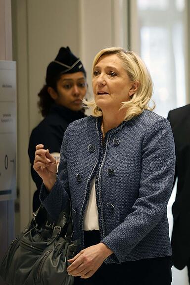 Noch bevor die Vorsitzende Richterin das komplette Urteil und die vollständige Strafe gegen Le Pen verkündete, verließ die Politikerin den Gerichtssaal. Ihr droht außerdem eine Haft- und eine Geldstrafe.