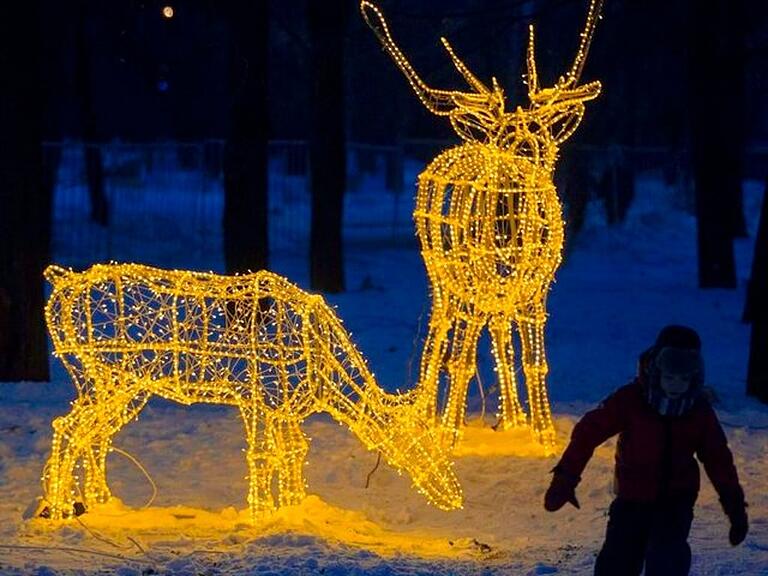 Lichtskulpturen in einem zugefrorenen Park in Russlands Hauptstadt Moskau
