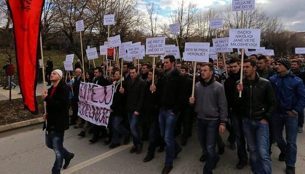 Die Albanischstämmigen hatten sich monatelang geweigert, die Stele aus rotem Marmor vor dem Rathaus selbst zu entfernen. Sie drohten mit einem neuen bewaffneten Aufstand. Die Albaner gaben an, dass sie mit dem Denkmal lediglich "unsere Helden aus dem Befreiungskrieg" ehren wollten.