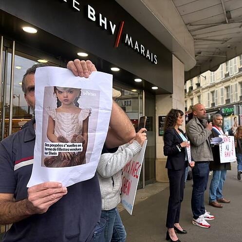 Begleitet von Protesten hatte Shein in Frankreich am Mittwoch in Paris einen ersten Ladenbereich im Pariser Traditionskaufhaus BHV Marais eröffnet. Besondere Brisanz hatte die Eröffnung bekommen, da erst vor wenigen Tagen öffentlich wurde, dass bei dem Online-Händler Sexpuppen in Kinderoptik angeboten worden waren. Frankreichs Regierung drohte der Plattform daraufhin mit einer Seitensperre, sollte sich das Verhalten wiederholen.