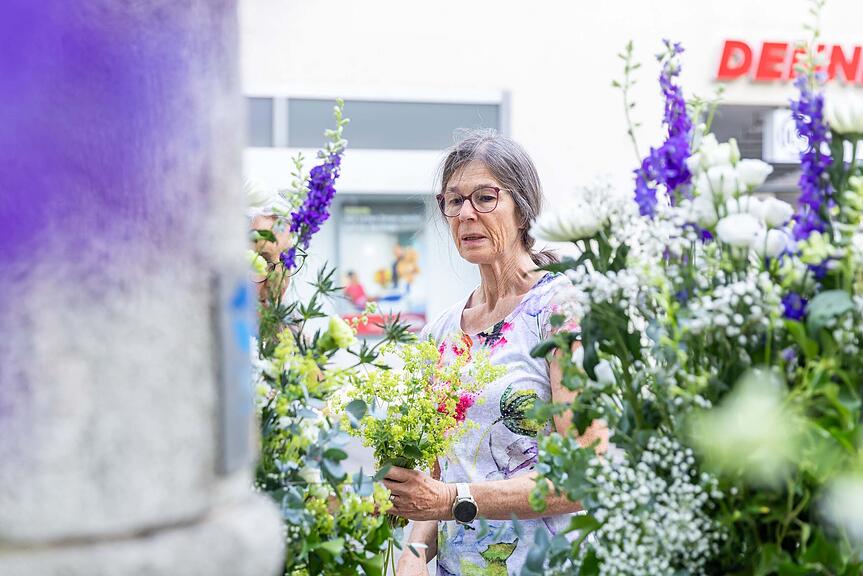 Ursula Baumann feiert ihr 40-jähriges Jubiläum beim Brunnenschmücken. Zum 38. Mal schmückt sie den Brunnen am Zollrain./>