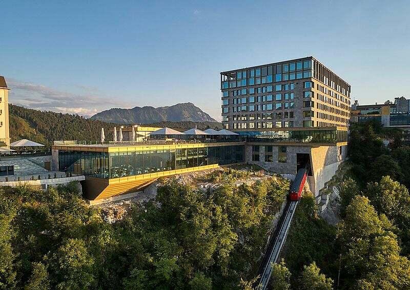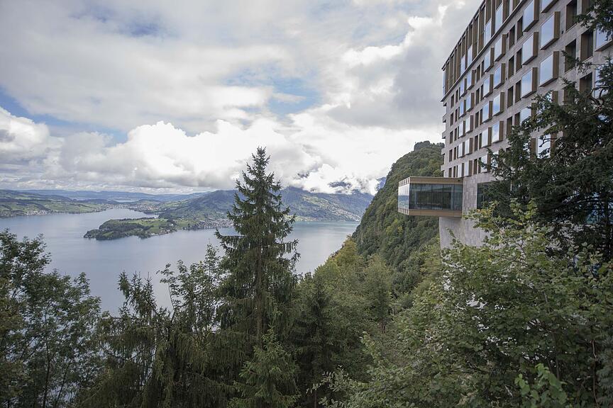 Das Hotel auf dem Bürgenstock, erreichbar mit der Bahn.