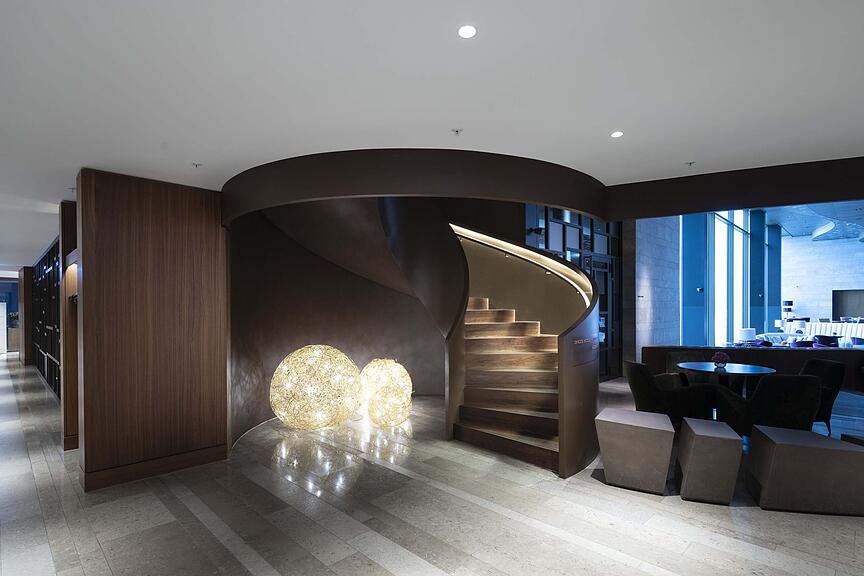 Treppe und Lobby des Bürgenstock-Hotels.