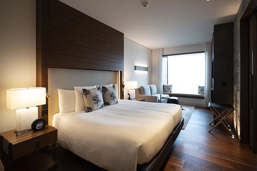 Das Bett eines Hotelzimmers im Hotel Bürgenstock.