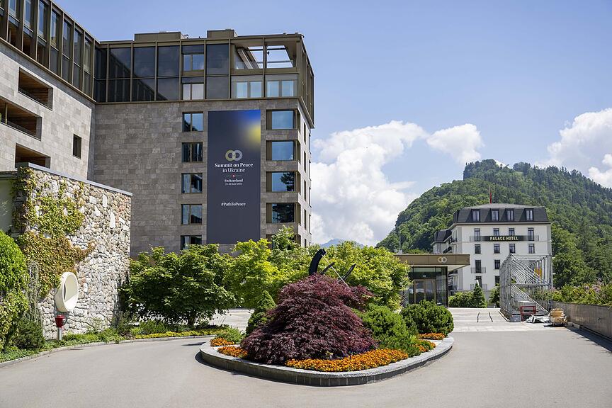 epa11408023 Final preparations are done for the 'Summit on Peace in Ukraine' at the Buergenstock Resort, in Obbeurgen, Switzerland, 13 June 2024. Switzerland will host the two-day Summit on Peace in Ukraine conference on 15 and 16 June 2024 at the Buergenstock Resort in central Switzerland. More than 90 delegations from all over the world are expected to attend the summit. EPA/URS FLUEELER