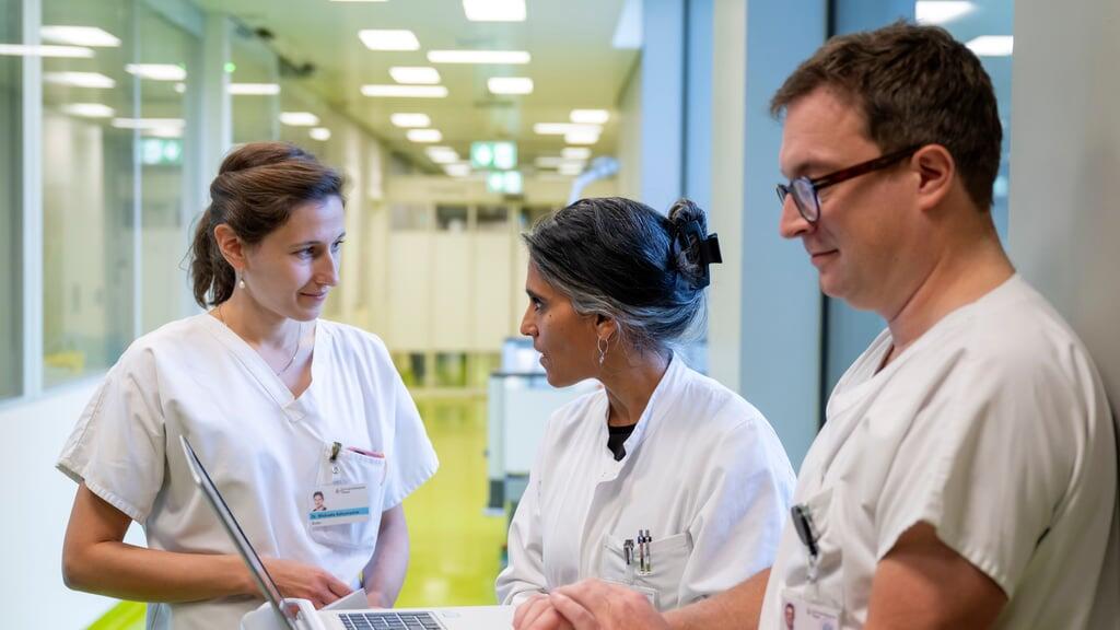 Nach mehreren Tagen im Spital verschlechtert sich der Zustand von Patient A . Sein Kreislauf ist nicht mehr stabil, er atmet schlecht und muss intubiert werden. Der Schlauch im Hals soll ihm das Atmen erleichtern.