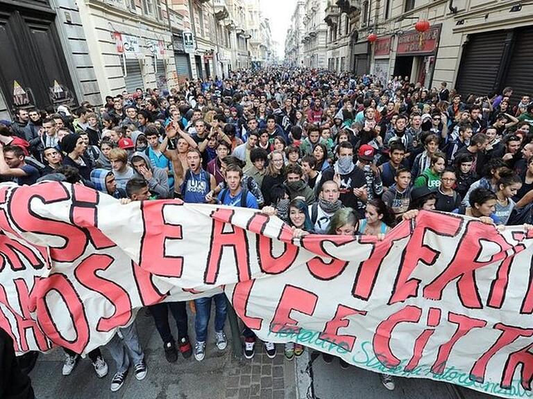 "Gegen die Krise und die Sparpolitik, lasst uns unsere Schulen und Städte zurückerobern!", stand auf einem Plakat, das die Jugendlichen in Rom vor sich hertrugen. Die von einem Grossaufgebot der Polizei begleitete Kundgebung verlief weitgehend friedlich.